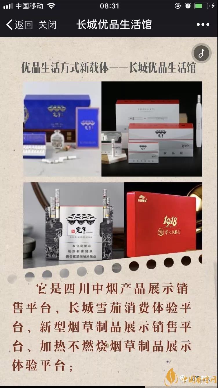 前面為大家介紹了,四川中煙第一次新零售發(fā)聲 創(chuàng)新高質(zhì)量發(fā)展全力謀變(優(yōu)品生活體驗(yàn)店)。朋友圈里確實(shí)有長城優(yōu)品生活館的H5宣傳介紹,而且也確實(shí)聲稱自己是“全國首家煙草集合店”。在介紹里面也有它是“煙草、咖啡、輕食、書籍與文創(chuàng)產(chǎn)品”五大生活元素的完美融合者。它是四川中煙產(chǎn)品展示銷售平臺(tái)。據(jù)說本月成都長城優(yōu)品生活館開啟。此外,小編也在成都人才網(wǎng)看到了已經(jīng)過期的“長城優(yōu)品生活館(含咖啡、輕食、書吧等業(yè)態(tài))誠聘營業(yè)員/服務(wù)員——農(nóng)歷年后上班”的招聘啟事,通過職位描述可以感受店內(nèi)的大概服務(wù)