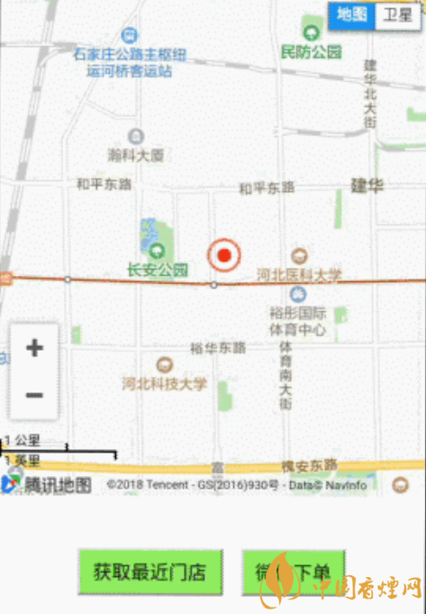 大家注意看下,在訂閱號的菜單欄有一個微信下單,點(diǎn)擊進(jìn)入就可以看到門店地址的分布地圖,如果不是在太原所以顯示附近并無門店。但這并不妨礙,購買體驗(yàn),因?yàn)橥ㄟ^智能手機(jī)的定位功能,公號自動判斷最近門店的地址,并提供了聯(lián)系方式。