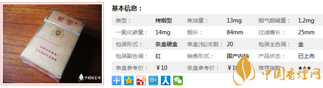 以上便是由香煙網(wǎng)小編為大家介紹的關(guān)于猴王磨砂香煙價(jià)格及參數(shù) 10元檔的誠(chéng)品好口糧相關(guān)信息,想要了解更多有關(guān)內(nèi)容請(qǐng)點(diǎn)擊:猴王神韻香煙多少錢(qián)一包 猴王神韻口感及圖片