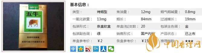 五牛綠煙支長(zhǎng)84mm,過(guò)濾嘴長(zhǎng)19mm,在濾嘴設(shè)計(jì)方面,這款煙屬于是煙中良心了,濾嘴僅為19mm,可吸部分加長(zhǎng),而且價(jià)格實(shí)惠,在消除煙癮的同時(shí),又不需花費(fèi)太多錢(qián),值得一品的親民好煙。下面我們一起來(lái)看五牛綠的參數(shù)信息:焦油量:12mg. 煙堿量:0.8mg. 一氧化碳量:13mg.