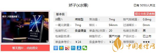 三、嬌子X(jué)冰爆香煙參數(shù)