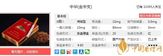 在原料上中華(金中支)堅(jiān)持中華系列產(chǎn)品一貫的原料精挑原則,秉承中華復(fù)合型“多地區(qū)、小比例”的原料配方理念形成葉組配方。中華(金中支)傳承經(jīng)典風(fēng)格,中和平衡,綜合提升了中華(金中支)的品質(zhì)體驗(yàn)。經(jīng)香煙網(wǎng)小編市場(chǎng)調(diào)查中華金中支售價(jià)為85元/包。