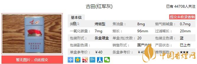 以上便是由香煙網(wǎng)小編為大家介紹的關(guān)于古田紅軍灰多少錢一包 古田紅軍灰口感如何的相關(guān)信息,想要了解更多有關(guān)內(nèi)容請(qǐng)點(diǎn)擊:泰山秀系列香煙有幾種 六款泰山秀系列香煙價(jià)格介紹