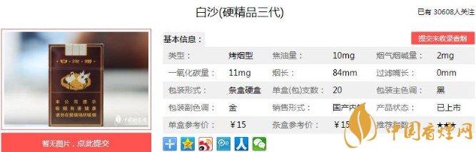 以上便是香煙網(wǎng)小編為大家介紹的關(guān)于兩次改良終成精品,白沙硬精品三代價(jià)格15元一包!的相關(guān)信息,看完之后大家是不是對于白沙(硬精品三代)的相關(guān)信息更加了解呢。大家還想查詢更多的相關(guān)內(nèi)容歡迎點(diǎn)擊:白沙軟和天下口感評鑒,百元價(jià)格級別的良心煙品