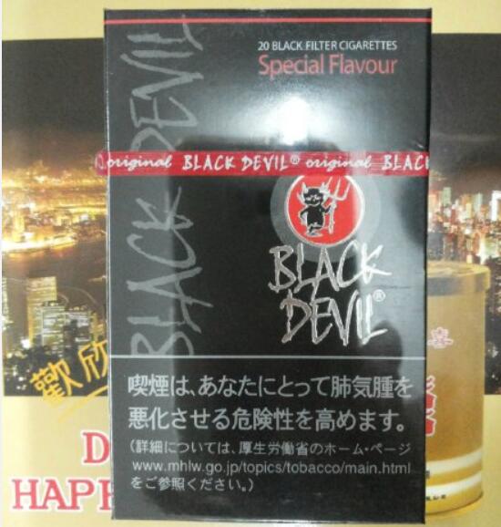 黑魔鬼香煙是火了很多年的日本煙,Heupink & Bloemen公司推出Black Devil品牌的第二種產(chǎn)品,甜巧克力,先在日本上市。由于日本厚生勞動(dòng)省要求香煙外包裝必須標(biāo)注吸煙危害健康的字樣,所以我們在市面所見的黑魔和銀魔都有日本文字。