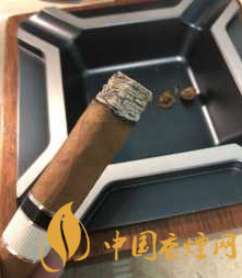 茄體呈現(xiàn)為魚雷壯,小金字塔卷工很棒,茄衣呈現(xiàn)淺棕色,茄帽處理很精細。綠色的腰花在棕色茄衣映襯下相當亮眼,整體搭配協(xié)調(diào)而美觀。