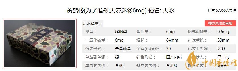 外觀看起來很不錯(cuò),軍旅迷彩風(fēng),大氣養(yǎng)眼。符合黃鶴樓綿軟的特點(diǎn),不過稍微有點(diǎn)辣喉,黃鶴樓大彩的焦油含量會(huì)更高一些,