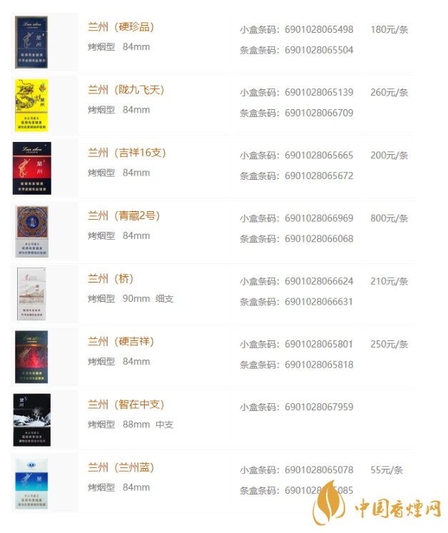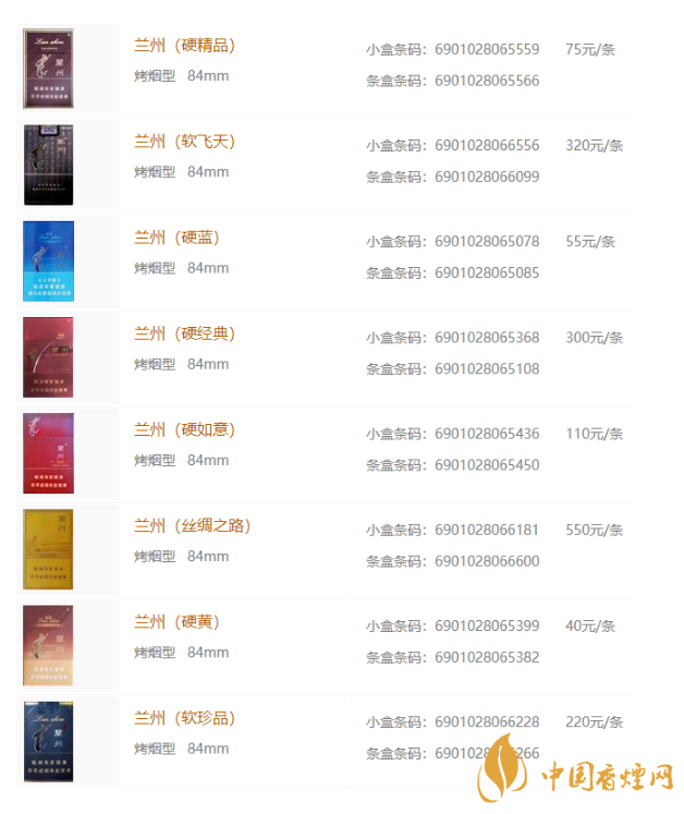 大家還記得幾年前《董小姐》這首歌嗎?這首民謠一度火爆全國(guó)。而且這首歌里有一句歌詞“陌生的人請(qǐng)給我一支蘭州”,這里面提到的蘭州香煙,大家有沒(méi)有了解過(guò)呢?蘭州卷煙品牌創(chuàng)立于三十多年前,2004年進(jìn)入《中國(guó)卷煙產(chǎn)品百牌號(hào)名錄》;2006年11月“蘭州”系列卷煙產(chǎn)品被中國(guó)質(zhì)量協(xié)會(huì)評(píng)定為質(zhì)量級(jí)別最高的“AAA”級(jí);2005年銷量超過(guò)50萬(wàn)箱,品牌規(guī)模位居全國(guó)第19位。那么蘭州香煙多少錢一包?以下便是小編給大家介紹的2020年蘭州香煙價(jià)格表圖。