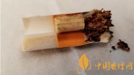 湊近撕開的煙盒,基本沒有什么外香溢出。抽出煙支,84mm規(guī)格下水松紙長度為38mm。應(yīng)該還有一截拼裝段在水松紙內(nèi),大概在云煙的煙字那個位置。