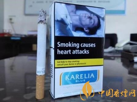 煙的名字,是KARELIA,我稱其為卡瑞利亞。當然,網(wǎng)上也有其它的譯法。這是一款產(chǎn)自歐洲希臘的免稅版本香煙,BLUE藍款。由此看來,至少還有RED紅款的存在。許多混合型品牌香煙,諸如L&M、云絲頓等,都有紅藍款的樣式。紅款為濃郁的原味,藍款為清雅的特醇味道。