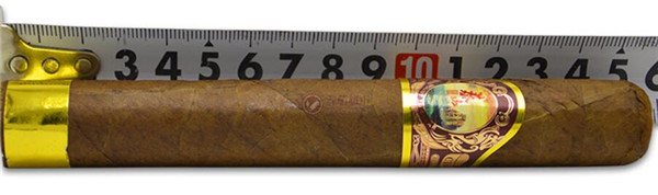 茄體結(jié)構(gòu)精糧,呈現(xiàn)為深褐色,衣帽下端配有金色的印花雙標(biāo),茄體底端處配有純金色的標(biāo)雙,雙重標(biāo)環(huán)奠定了其尊貴的品質(zhì),使它看起來華麗無比。