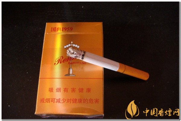 打開(kāi)煙盒,首先看到的是錫紙上國(guó)典1959字樣??拷宦?,挺清爽的煙草香,帶點(diǎn)涼清酸爽的氣味。手捏煙支,感覺(jué)充實(shí),煙絲的色澤鮮艷。過(guò)濾嘴是金黃色的,上有““人民大會(huì)堂”的字樣。過(guò)濾嘴裙帶處有一道白金色的金箍,金箍下是“國(guó)典1959”字體。
