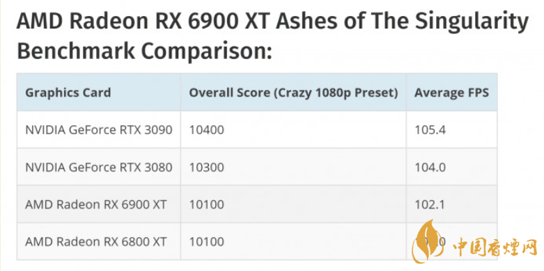 這表明RTX 3090比RX 6900 XT快3.33%。應(yīng)當(dāng)注意,RX 6800 XT得分為102.0 FPS,提供相同的性能,這可能意味著RX 6900 XT在1080P基準(zhǔn)測試中并未充分利用其性能。在這里,只有較低級別的卡(例如RX 6800和RTX 3070)顯示出更大的差異。