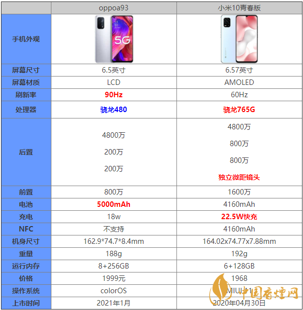 oppoa93和小米10青春版哪個好?這兩款手機(jī)價位都在千元機(jī)的范疇,那么oppoa93和小米10青春版有什么區(qū)別?哪款手機(jī)更值得入手?接下來香煙網(wǎng)小編為大家?guī)砹薿ppoa93和小米10青春版對比詳情,感興趣的朋友一起來看看吧!
