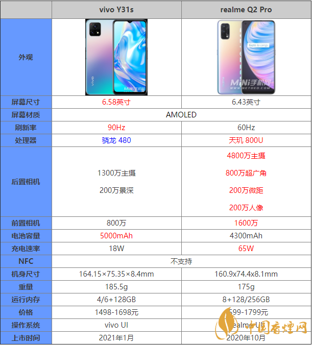 vivoY31s和realmeQ2Pro哪款手機更好?這兩款手機都在千元機的范疇內(nèi),那么這款兩款手機在配置上有什么區(qū)別,哪個更值得入手?接下來香煙網(wǎng)小編就為大家?guī)砹嗽敿?xì)的參數(shù)對比,感興趣的朋友一起看看吧!