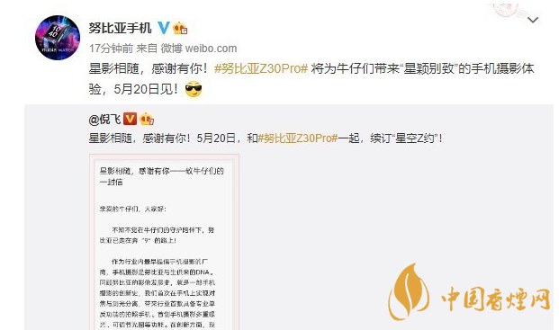中興通訊終端業(yè)務(wù)部總裁兼努比亞技術(shù)有限公司總裁倪飛發(fā)布了“致牛仔的信”,正式宣布努比亞Z30 Pro將于5月20日發(fā)布,下面跟著小編來一起了解一下吧。
