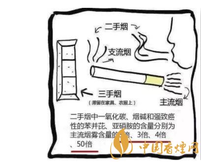 三手煙:亦稱非自愿性吸煙,指二手煙排出后殘留在空間物體如衣服、墻壁、地毯、家具甚至吸煙者頭發(fā)和皮膚等表面的煙草殘留物。新的研究給三手煙制定了“4R”定義,首先Remain是指二手煙排除后殘留在空間物體及吸煙者體表,這些殘留物可以與空氣中的化學(xué)物質(zhì)發(fā)生化學(xué)反應(yīng),即React,生成更加具有毒性的化學(xué)物質(zhì),這些化學(xué)物質(zhì)可以重新釋放到空氣中,即Re-emit,并長時(shí)間懸浮,Resuspended long,造成對人體持久、嚴(yán)重的損害,三手煙可通過吸入、從手到口經(jīng)消化道及皮膚吸收三種方式進(jìn)入人體。