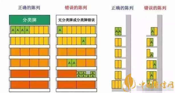 卷煙商品在柜臺、貨架上的陳列按照地域、品類、價格、包裝顏色等因素有規(guī)律的擺放,做到分類明確,重點突出,主次分明,井然有序,為消費者節(jié)省時間,方便消費者選購。