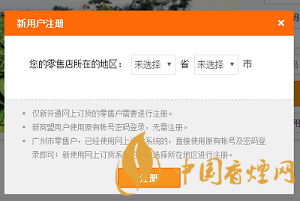 若新用戶則需注冊,選擇所在地區(qū)后點擊“注冊”