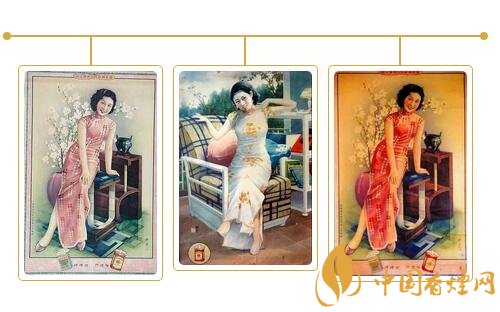 民國時期的香煙廣告,“美女”成為廣告畫中的絕對主角,使得廣告散發(fā)出誘人的女性魅力,以迎合和吸引大眾的注意力。而在當時紅極一時的哈德門香煙,全國各大中城市的巨幅廣告牌比比皆是,觸目可及。為了促銷增收,除大張旗鼓地推出各類廣告外,還在每盒煙中配有畫片一枚,供欣賞收藏。畫面皆為摩登美女,印刷精美,色彩靚麗。畫片背面亦印有廣告詞“哈德門香煙人人愛吸”。據(jù)查,美女共有百名,這些活潑自信,燙發(fā),穿高跟鞋,旗袍高開叉的“香煙美女”,服飾發(fā)型和神態(tài)各有千秋,情態(tài)紛呈,不管是讀書、梳妝,還是玩樂,無一不讓人感受到美感帶來的視覺沖擊。一枚擁有,即思百枚。