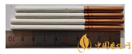 真品卷煙:煙支長度為100mm,濾嘴處有四排激光預(yù)打孔,打孔透氣度好。卷煙紙顏色白,手摸煙支飽滿緊實,搭扣處結(jié)合完美。煙絲呈現(xiàn)絲條狀,色澤基本一致。
