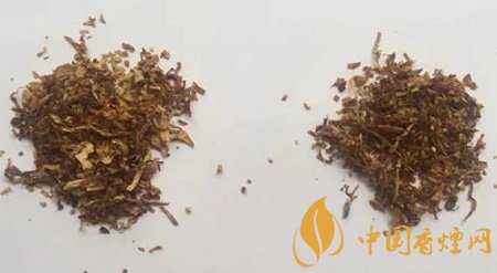 真品卷煙煙絲呈金黃色、絲條狀,香氣綿柔;假煙煙絲呈棕黑色,含末量大,香精氣味濃烈。