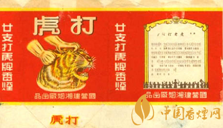 打虎牌煙標,是一枚上世紀50年代初期國營建湘煙廠(今湖南中煙工業(yè)公司長沙卷煙廠)出品的《打虎牌》煙標(如圖),該標以大紅為底色,彩色套印,主版圖案運用漫畫藝術(shù)形式,通過簡潔夸張的繪畫技巧,粗獷的線條描繪出一手抓住虎頭,一手重拳出擊痛打虎頭的畫面;標中“打虎”和“國營建湘煙廠”的文字,從右向左橫排,有著鮮明的時代特色。副版上則印有一首鏗鏘有力的《打老虎》歌曲:“打打打,我們齊心合力打老虎,堅決徹底反貪污,反貪污,打老虎,集中火力來圍攻,一個老虎都不放過。老虎不減不收兵,一定要他快坦白。他要是不坦白,就打打打。”這首歌曾唱響在大江南北......