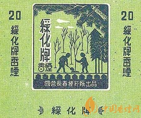 上世紀(jì)50年代,國營長春卷煙廠出品了“綠化牌”煙標(biāo)。這枚煙標(biāo)以綠色為底色,主版采用剪影的形式描繪了一幅植樹圖,畫面上一個人扶著樹苗,另外一個人揮鍬培土,不遠處是已經(jīng)栽種好的一棵棵樹苗,在樹苗右上方,高大濃密的松樹如母親一般呵護著小樹苗;副版上印著“大家植樹 綠化祖國 護林防火 人人有責(zé)”的字樣。