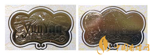 真品卷煙:云煙燙金圖案立體,凹凸分明,線條清晰,層次感強,金屬感強。