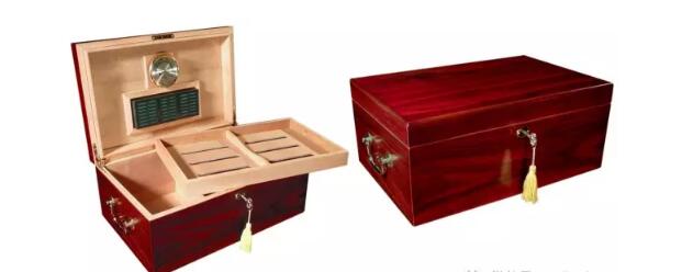 現(xiàn)在雪茄保濕盒一般采用后兩種方式,應用最廣泛,也是最普通的是第二種,使用中等密度纖維板作為主體,膨脹度較小,用西班牙雪松木皮作為內(nèi)襯又能比較好的存儲雪茄。那些比較昂貴的雪茄保濕盒通常會采用第三種方式,內(nèi)襯是西班牙雪松木皮,主體結(jié)構(gòu)用的是硬木,給硬木皮上高光漆更容易些,同時也更有質(zhì)感。另外一個原因是很多硬木本身就是昂貴的。