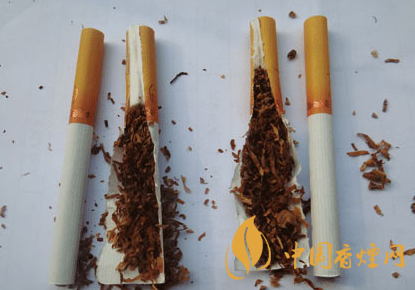 煙支及煙絲差異比對(duì):真品煙支加長(zhǎng)濾棒用來(lái)降焦減害,煙絲配比及切絲寬度均勻,假煙煙支濾棒只有19mm,無(wú)法達(dá)到減害降焦作用,煙絲含梗末較多,與真品煙絲外觀特征存在明顯差異。
