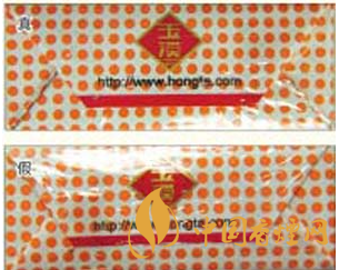 1.小盒外包裝所用的煙用包裝膜(透明紙)材質(zhì)差異對(duì)比:真煙所用的透明紙摩擦系數(shù)較低,透明度高,用手觸摸可感到其表面較光滑,紙質(zhì)較薄;假煙所用的透明紙材質(zhì)粗劣,摩擦系數(shù)較高,用手觸摸可感到較滯手,紙質(zhì)較厚。