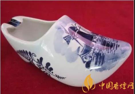 這款工藝煙灰缸是來自荷蘭的這款煙灰缸,呈尖頭木屐形,底色為白色,除少量文字與邊紋外,圖案皆以藍(lán)色繪之。這款高檔煙灰缸圖片鞋身左右前后都繪有對稱的三葉草圖案;鞋面繪有荷蘭風(fēng)車、村舍及水田灌木圖案;此外,鞋頭還用淡色繪以藍(lán)天白云,籠罩上空。而鞋口靠近鞋跟方向的邊沿處,設(shè)計(jì)了三個(gè)凹槽,方便多人吸煙時(shí)使用??偠灾?,是一款顏值與實(shí)用并存的煙灰缸無疑了。