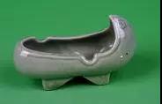 這款工藝煙灰缸是來自韓國的瓷質(zhì)煙灰缸,顏色為細(xì)膩的青綠色,造型呈韓國古時(shí)的翹頭船有齒屐鞋形,鞋口沿輕微向內(nèi),靠近鞋跟及鞋頭處各有一個(gè)凹槽,用來擱置香煙。